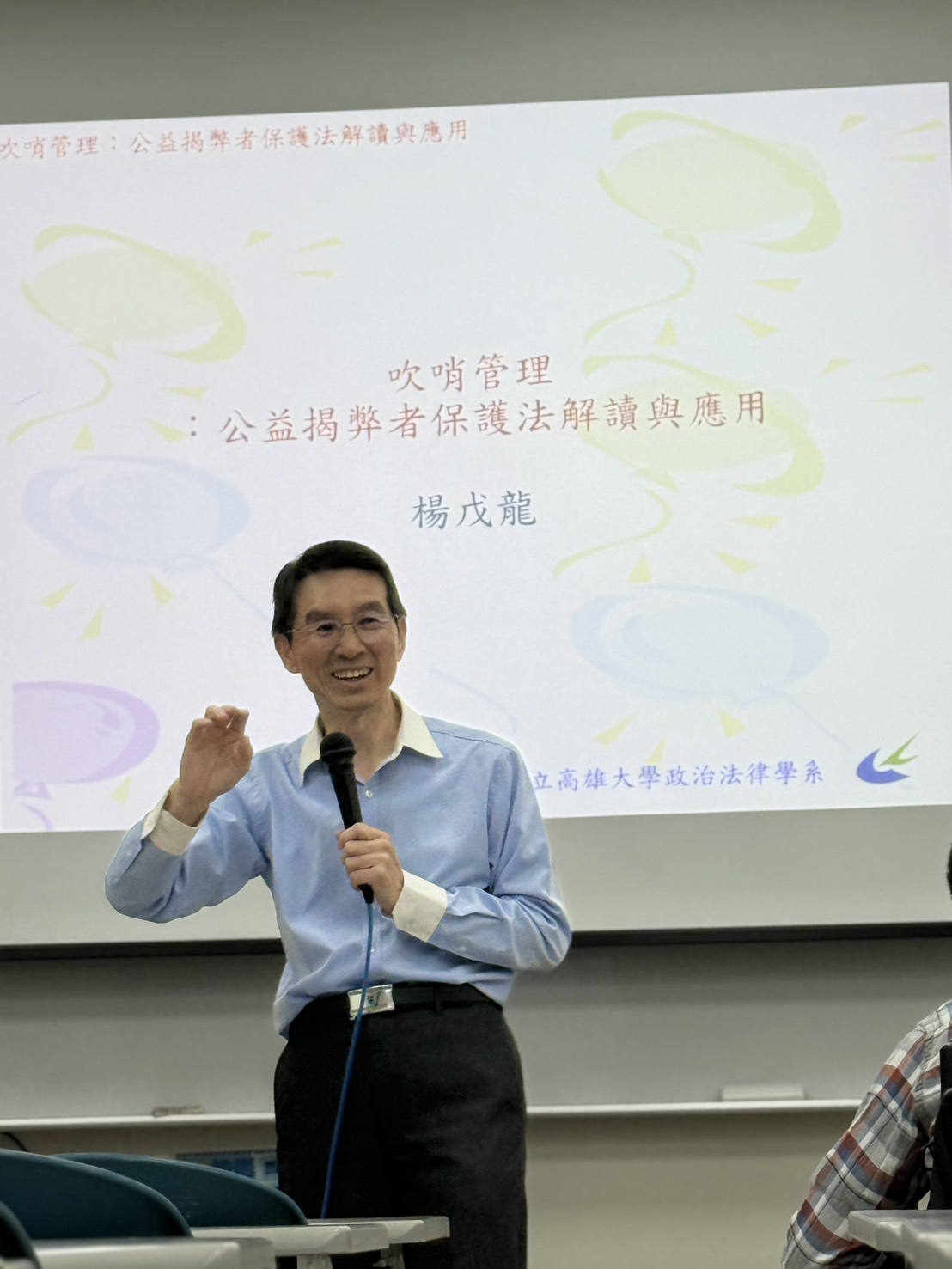 楊戊龍 | 國立高雄大學政治法律學系教授 | 吹哨管理:公益揭弊者保護法解讀與應用 |